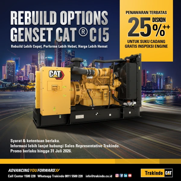 Ensure the optimal performance of your Cat® C15 Genset with Trakindo’s rebuild solution. Performed by certified technicians using genuine Cat® parts, this service is designed to maintain unit reliability while minimizing the risk of operational downtime.