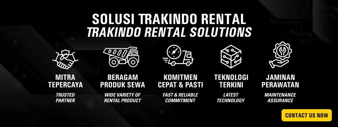 Trakindo Rental menyediakan solusi terintegrasi untuk memenuhi seluruh kebutuhan alat berat Anda. Kami menawarkan alat berkualitas tinggi yang didukung oleh teknisi bersertifikat dan layanan yang andal.